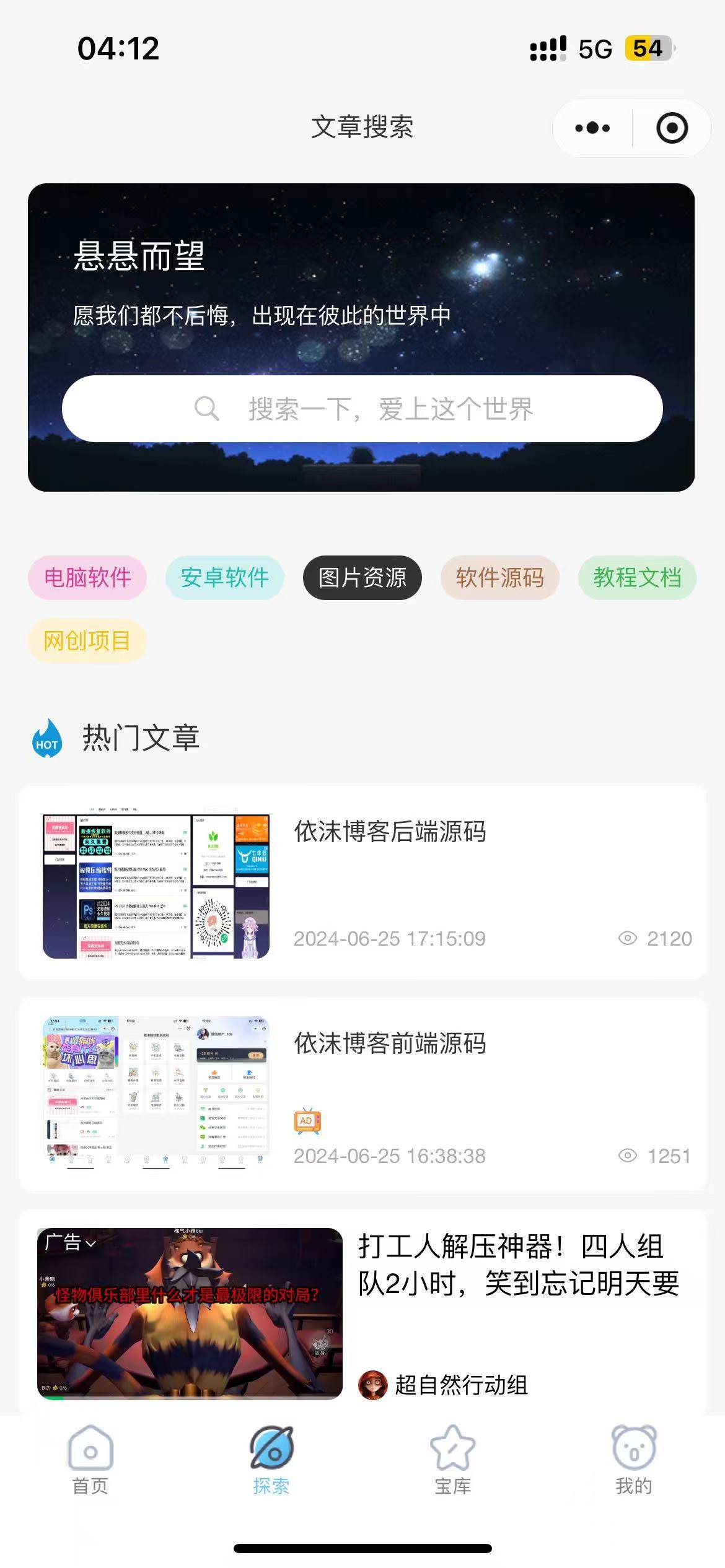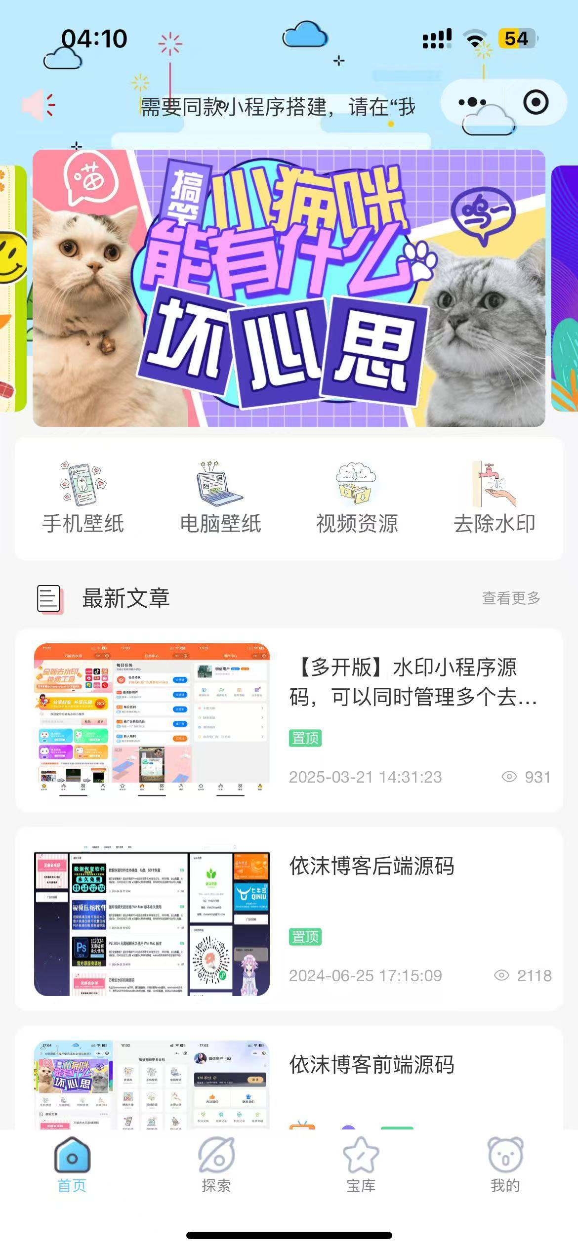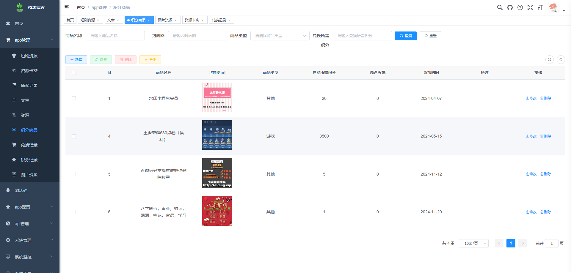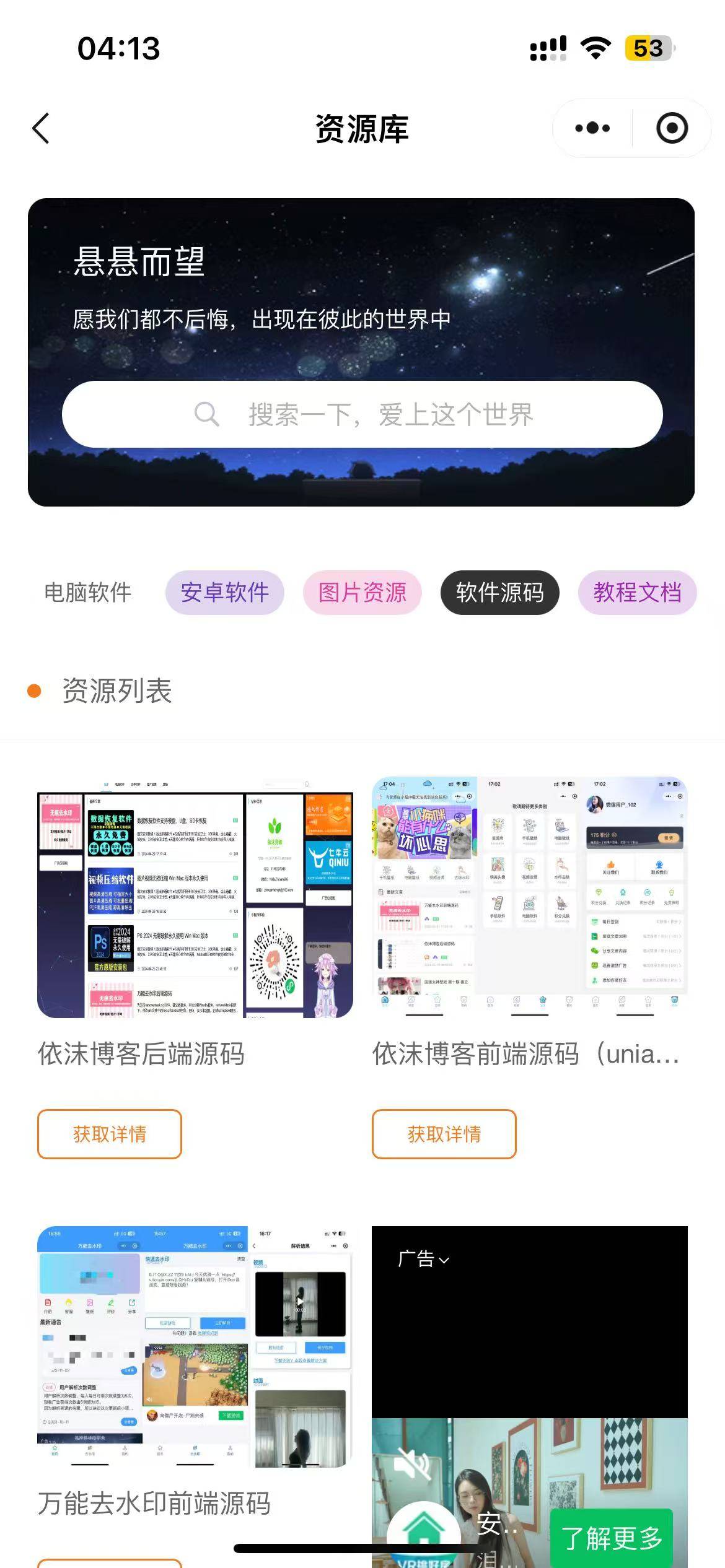 # 依沫资源博客 **Repository Path**: ananyouu/yimo-resource-blog ## Basic Information - **Project Name**: 依沫资源博客 - **Description**: 依沫资源博客专为内容/资源下载场景设计,一站式解决内容带货、流量、资源变现,资源博客文章分享,目前以实现个人博客,文章发表,资源收集下载,手机壁纸下载,电脑壁纸下载,头像下载,支持抖音,快手,小红书等 100+ 平台的图片视频水印去除去水印,内容展示均已实现微信流量主广告变现功能,可根据自己需要进行配置, 还加入了积分系统和积分商店,可让用户完成相应的任务获得积分换取奖励。 - **Primary Language**: Unknown - **License**: MIT - **Default Branch**: master - **Homepage**: None - **GVP Project**: No ## Statistics - **Stars**: 110 - **Forks**: 50 - **Created**: 2024-05-14 - **Last Updated**: 2025-11-01 ## Categories & Tags **Categories**: blog **Tags**: uni-app, 去水印, 广告变现, 博客, 壁纸 ## README