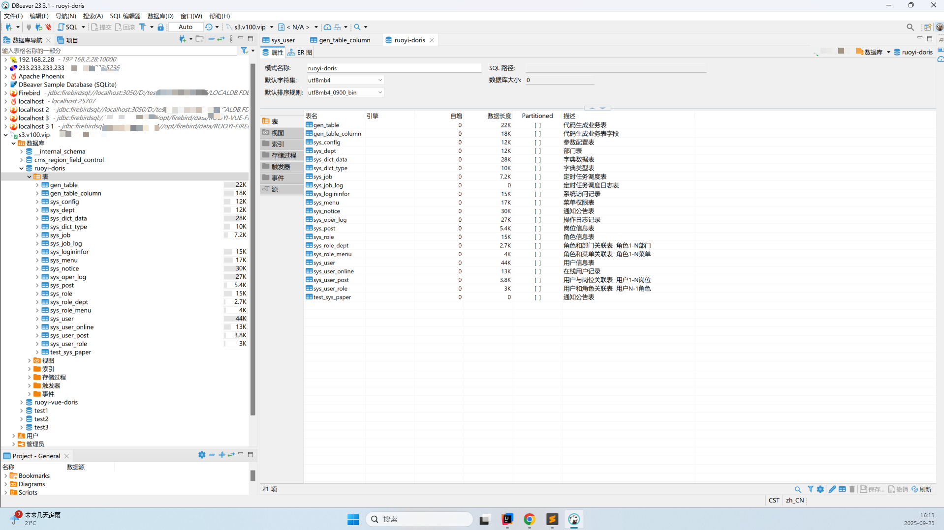# ruoyi-doris **Repository Path**: avatarwx/ruoyi-doris ## Basic Information - **Project Name**: ruoyi-doris - **Description**: ruoyi-doris - **Primary Language**: Unknown - **License**: MIT - **Default Branch**: master - **Homepage**: None - **GVP Project**: No ## Statistics - **Stars**: 1 - **Forks**: 0 - **Created**: 2025-09-19 - **Last Updated**: 2025-10-29 ## Categories & Tags **Categories**: Uncategorized **Tags**: doris, ruoyi-doris, doris-ruoyi, thymeleaf, doris-thymeleaf ## README ## 平台简介 - 将ruoyi-vue底层数据库改为Doris。Doris 是一个 开源的分布式分析型数据库系统, 最适合实时数据分析、交互式报表、多维 OLAP、大规模宽表、BI 查询加速,尤其适合 “海量数据秒级查询 + 高并发访问” 的业务场景。 - ✅ 查询快:适合做实时大数据分析,查询延迟非常低。 ✅ 结构简单:部署和使用都比较简单,适合中小企业快速上手。 ✅ 支持 SQL:像使用 MySQL 一样使用 SQL 来分析数据。 ✅ 一体化:支持明细、聚合、物化视图等多种模型,一库多用。 ✅ 兼容 MySQL 协议:可以用 MySQL 工具连接它。 - 记得右上角点个 star 持续关注更新哟~~  ## 系统模块 ``` com.ruoyi ├── ruoyi-admin // 启动类 主配置 ├── ruoyi-generator // 代码生成 ├── ruoyi-auth // 用户认证 ├── ruoyi-quart // 定时任务 ├── ruoyi-system // 业务代码 ├── ruoyi-ui // 前端 ``` ## 内置功能 1. 用户管理:用户是系统操作者,该功能主要完成系统用户配置。 2. 部门管理:配置系统组织机构(公司、部门、小组),树结构展现支持数据权限。 ``` ...... ``` 6. 代码生成:前后端代码的生成(java、html、xml、sql)支持CRUD下载 除此之外,还支持 系统接口,服务监控,缓存监控,在线构建器,连接池监视等功能。 ## 在线体验 - (后台管理)- https://s4.s100.vip:14280 - 测试账号:admin / admin123 ## 页面功能展示