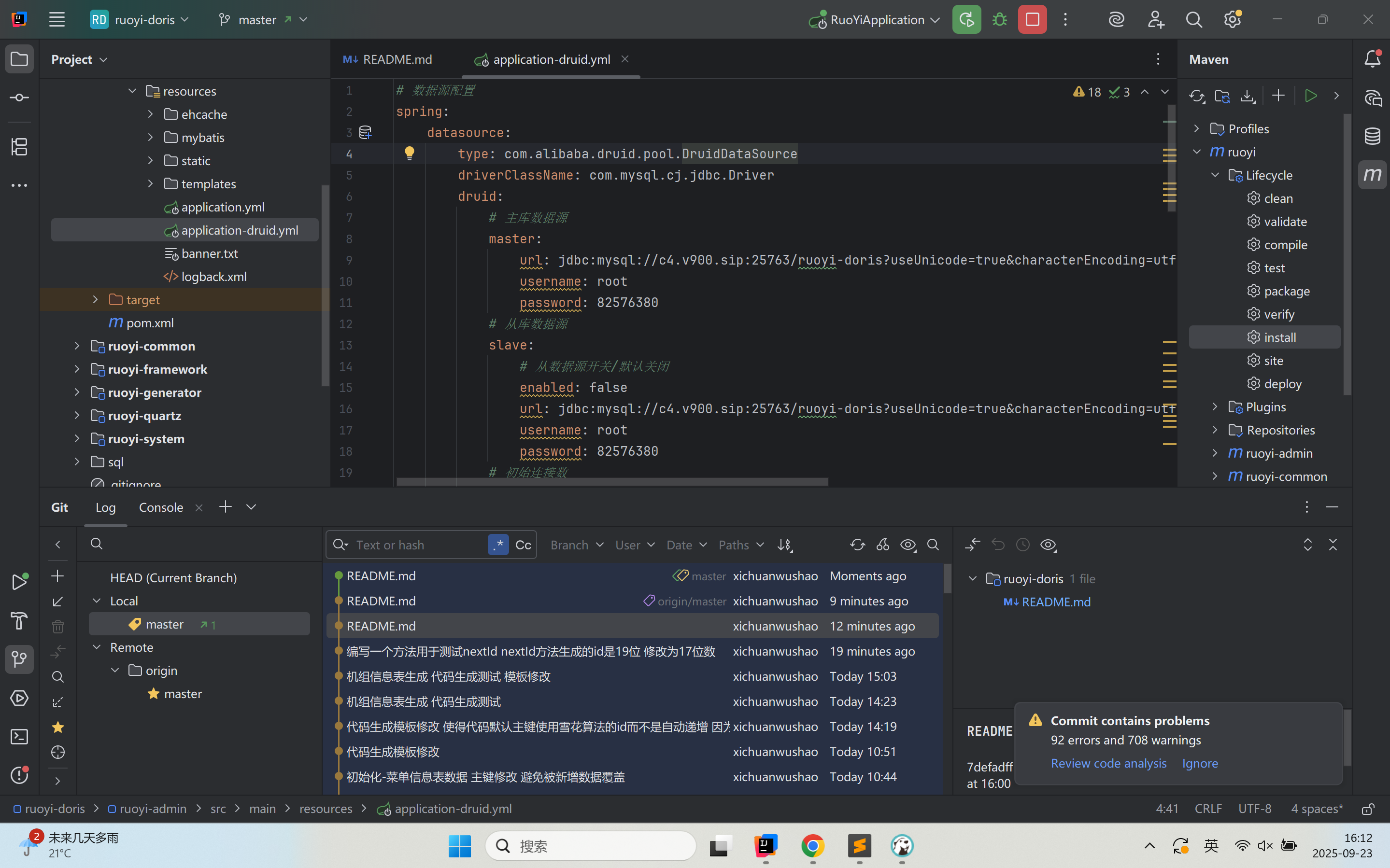 因为用的是 **若依 + Doris**,而且之前遇到 `last_insert_id()` 报错,说明 Doris 没有完全兼容 MySQL 的自增主键取值。