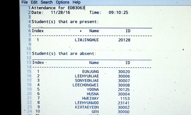 process. Upon exiting the process, an attendance file that lists the present and absent students will be