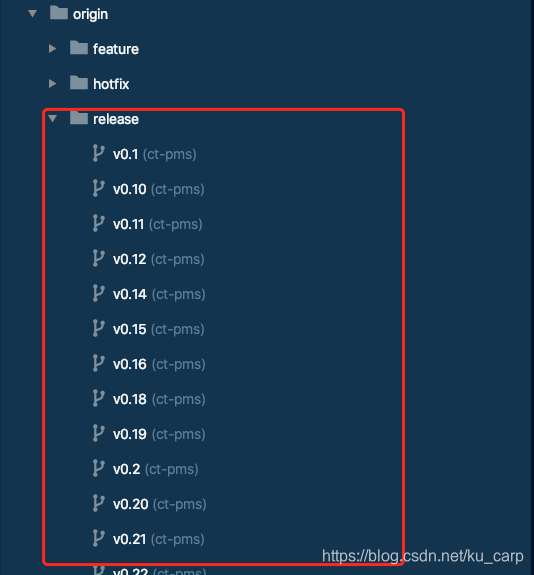 如图,为release分支,由版本号命名,其作用主要为上线前的准备,包括**测试和app质量检测**.