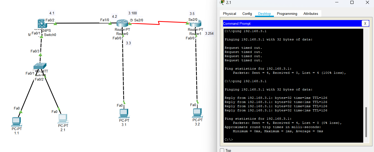 diff --git "a/01 \347\216\213\351\233\252\345\275\261/20240512 \347\275\221\347\273\234\350\256\276\345\244\207\347\273\274\345\220\210\347\273\203\344\271\240.md" "b/01 \347\216\213\351\233\252\345\275\261/20240512 \347\275\221\347\273\234\350\256\276\345\244\207\347\273\274\345\220\210\347\273\203\344\271\240.md" new file mode 100644 index 0000000000000000000000000000000000000000..7615579f1484dc9b5b0721e871e565ffbde9e809 --- /dev/null +++ "b/01 \347\216\213\351\233\252\345\275\261/20240512 \347\275\221\347\273\234\350\256\276\345\244\207\347\273\274\345\220\210\347\273\203\344\271\240.md" @@ -0,0 +1,126 @@ + + +```js +// 二层交换机 +Switch>en +Switch#conf t +Enter configuration commands, one per line. End with CNTL/Z. +Switch(config)#hostname SW2 +SW2(config)#vlan 10 +SW2(config-vlan)#vlan 20 +SW2(config-vlan)#exit +SW2(config)#int f 0/2 +SW2(config-if)#sw acc vlan 20 +SW2(config-if)#exit +SW2(config)#int f0/1 +SW2(config-if)#sw acc vlan 10 +SW2(config-if)#exit +SW2(config)#int f 0/3 +SW2(config-if)#sw mode t +// 三层交换机 +Switch>en +Switch#conf t +Enter configuration commands, one per line. End with CNTL/Z. +Switch(config)#ip routing +Switch(config)#int f 0/1 +Switch(config-if)#sw t enca dot1q +Switch(config-if)#sw mode t +Switch(config-if)#exit +Switch(config)#vlan 10 +Switch(config-vlan)#vlan 20 +Switch(config-vlan)#exit +Switch(config)#int vlan 10 +Switch(config-if)#ip address 192.168.1.254 255.255.255.0 +Switch(config-if)#exit +Switch(config)#int vlan 20 +Switch(config-if)#ip address 192.168.2.254 255.255.255.0 +Switch(config-if)#exit +Switch(config)#int f 0/2 +Switch(config-if)#no shut +Switch(config-if)#no sw +Switch(config-if)#ip address 192.168.4.1 255.255.255.0 +Switch(config-if)#exit +Switch(config)#route ospf 1 +Switch(config-router)#network 192.168.1.0 0.0.0.255 a 0 +Switch(config-router)#network 192.168.2.0 0.0.0.255 a 0 +Switch(config-router)#network 192.168.4.0 0.0.0.255 a 0 +Switch(config-router)#exit +Switch(config)#exit +Switch#show ip route +Codes: C - connected, S - static, I - IGRP, R - RIP, M - mobile, B - BGP + D - EIGRP, EX - EIGRP external, O - OSPF, IA - OSPF inter area + N1 - OSPF NSSA external type 1, N2 - OSPF NSSA external type 2 + E1 - OSPF external type 1, E2 - OSPF external type 2, E - EGP + i - IS-IS, L1 - IS-IS level-1, L2 - IS-IS level-2, ia - IS-IS inter area + * - candidate default, U - per-user static route, o - ODR + P - periodic downloaded static route + +Gateway of last resort is not set + +C 192.168.1.0/24 is directly connected, Vlan10 +C 192.168.2.0/24 is directly connected, Vlan20 + 192.168.3.0/26 is subnetted, 2 subnets +O 192.168.3.0 [110/2] via 192.168.4.2, 00:05:13, FastEthernet0/2 +O 192.168.3.64 [110/65] via 192.168.4.2, 00:06:26, FastEthernet0/2 +C 192.168.4.0/24 is directly connected, FastEthernet0/2 +// Route0 +Router>en +Router#conf t +Enter configuration commands, one per line. End with CNTL/Z. +Router(config)#int f 1/0 +Router(config-if)#no shut +Router(config-if)#ip address 192.168.4.2 255.255.255.0 +Router(config-if)#int f 0/0 +Router(config-if)#no shut +Router(config-if)#ip address 192.168.3.3 255.255.255.192 +Router(config-if)#exit +Router(config)#int se 2/0 +Router(config-if)#ip address 192.168.3.100 255.255.255.192 +Router(config-if)#no shut +Router(config-if)#clock rate 72000 +Router(config-if)#exit +Router(config)#route ospf 1 +Router(config-router)#network 192.168.4.0 0.0.0.255 a 0 +Router(config-router)#network 192.168.3.0 0.0.0.63 a 0 +Router(config-router)#exit +Router(config)#line vty 0 4 +Router(config-line)#password 123456 +Router(config-line)#login +Router(config-line)#exit +Router(config)#enable password 123456 +Router(config)#exit +Router#show ip route +Codes: C - connected, S - static, I - IGRP, R - RIP, M - mobile, B - BGP + D - EIGRP, EX - EIGRP external, O - OSPF, IA - OSPF inter area + N1 - OSPF NSSA external type 1, N2 - OSPF NSSA external type 2 + E1 - OSPF external type 1, E2 - OSPF external type 2, E - EGP + i - IS-IS, L1 - IS-IS level-1, L2 - IS-IS level-2, ia - IS-IS inter area + * - candidate default, U - per-user static route, o - ODR + P - periodic downloaded static route + +Gateway of last resort is not set + +O 192.168.1.0/24 [110/2] via 192.168.4.1, 00:08:16, FastEthernet1/0 +O 192.168.2.0/24 [110/2] via 192.168.4.1, 00:08:16, FastEthernet1/0 + 192.168.3.0/26 is subnetted, 2 subnets +C 192.168.3.0 is directly connected, FastEthernet0/0 +C 192.168.3.64 is directly connected, Serial2/0 +C 192.168.4.0/24 is directly connected, FastEthernet1/0 +// Route1 +Router>en +Router#conf t +Enter configuration commands, one per line. End with CNTL/Z. +Router(config)#int se 2/0 +Router(config-if)#ip address 192.168.3.5 255.255.255.192 +Router(config-if)#no shut +Router(config-if)#exit +Router(config)#int f 0/0 +Router(config-if)#ip address 192.168.3.254 255.255.255.192 +Router(config-if)#no shut +Router(config-if)#exit +Router(config)#route ospf 1 +Router(config-router)#network 192.168.3.0 0.0.0.63 a 0 +Router(config-router)#exit +Router(config)#exit +``` +
