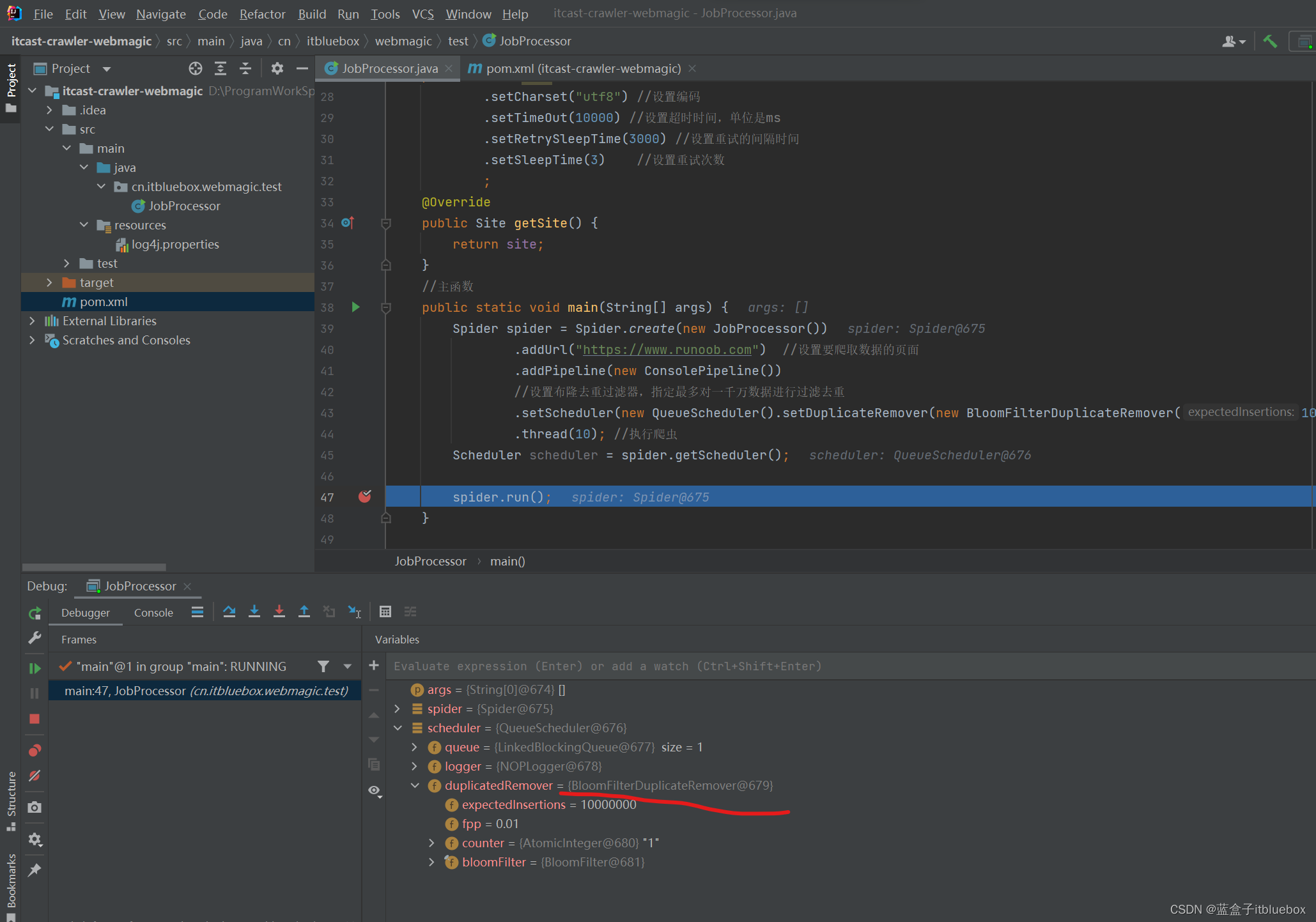 .setScheduler(new QueueScheduler().setDuplicateRemover(new BloomFilterDuplicateRemover(100000)))