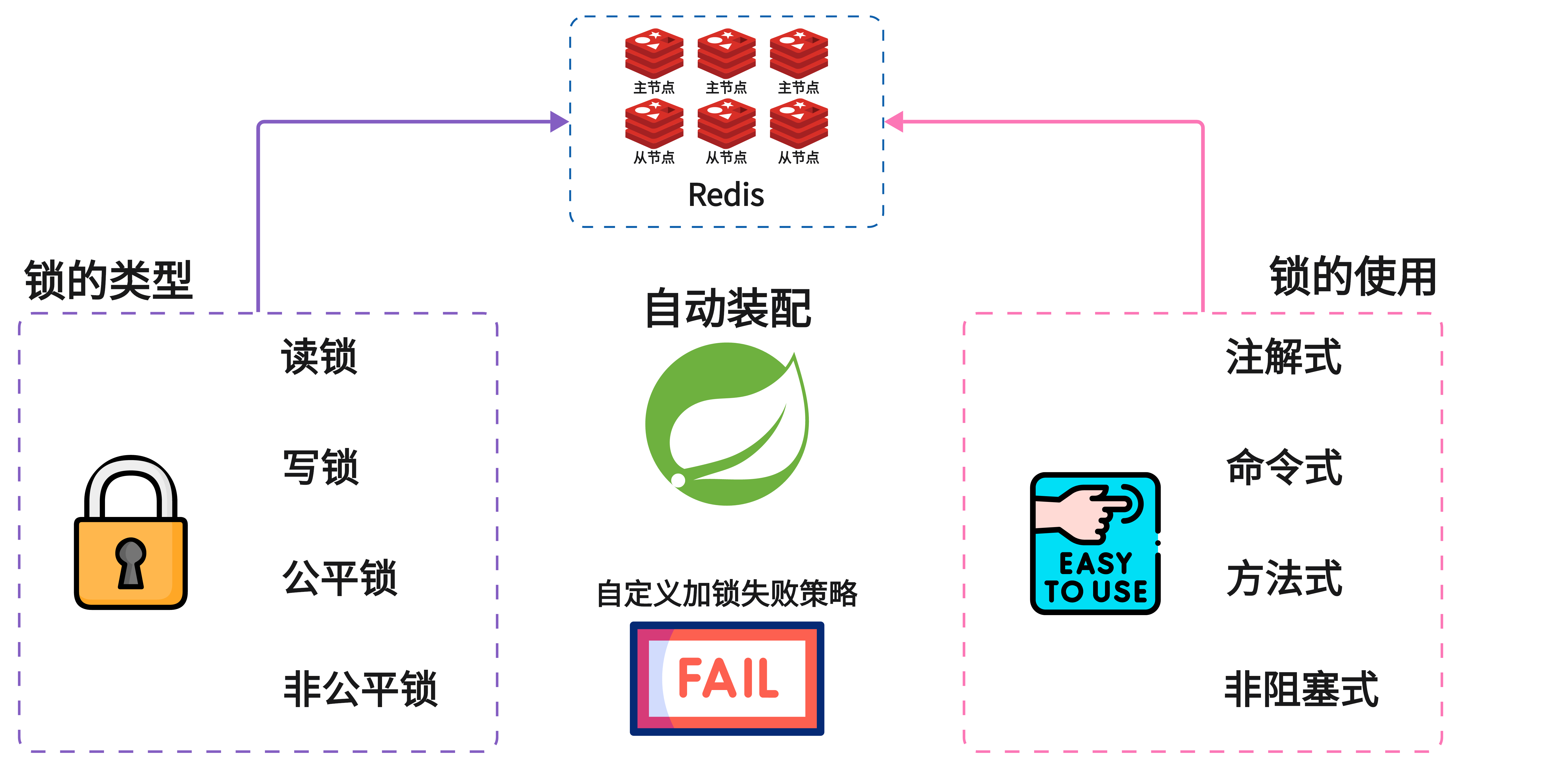 - 🔹 **Plus 方案:对 Redisson 重构设计,支持的锁类型:读锁、写锁、公平锁、非公平锁。锁的使用:注解化、命令式、方法级。可自定义处理失败策略。**