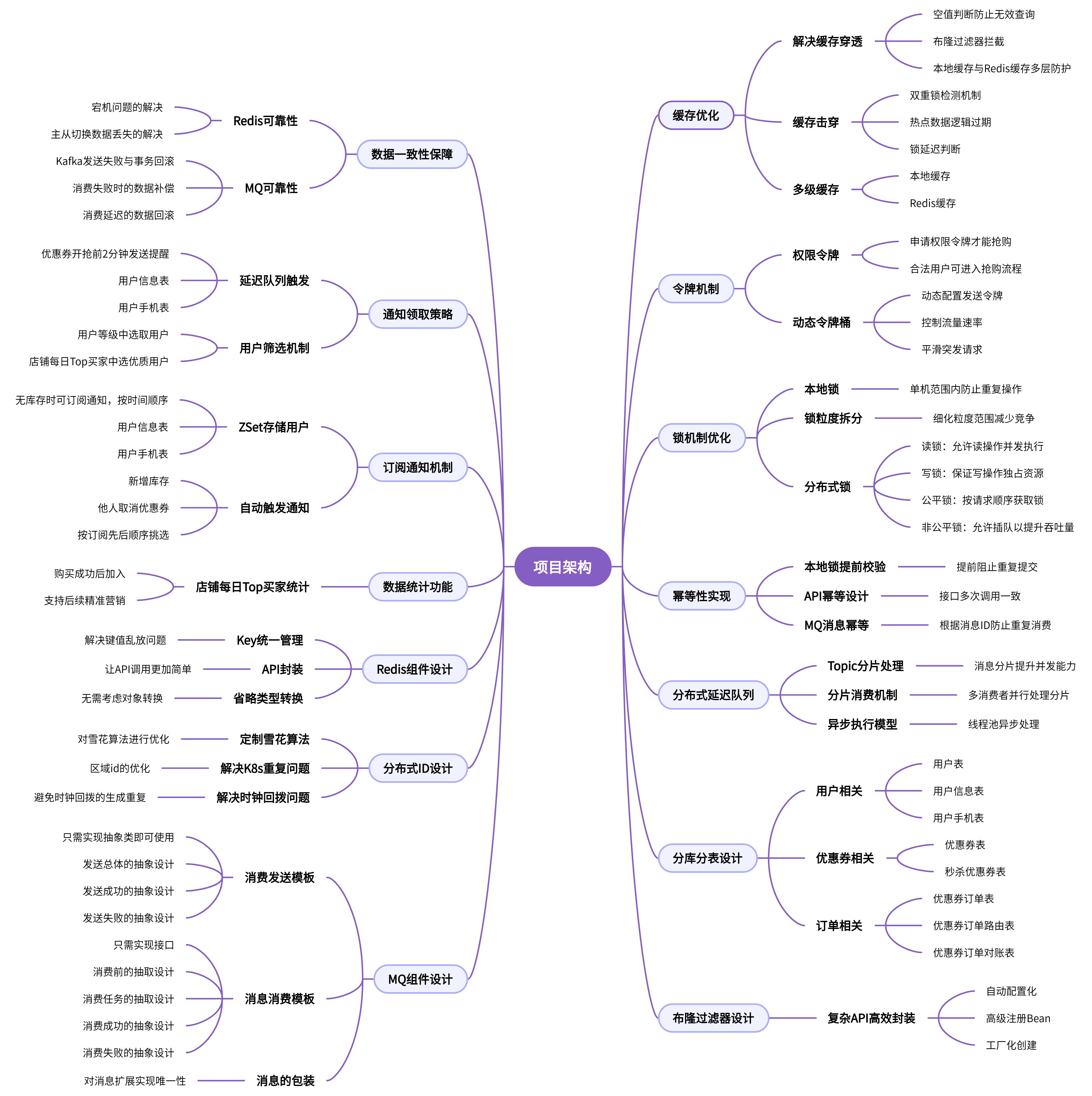 - 关键扣减段使用细粒度锁(按活动/店铺/券),避免大锁引发串行化与吞吐下降。