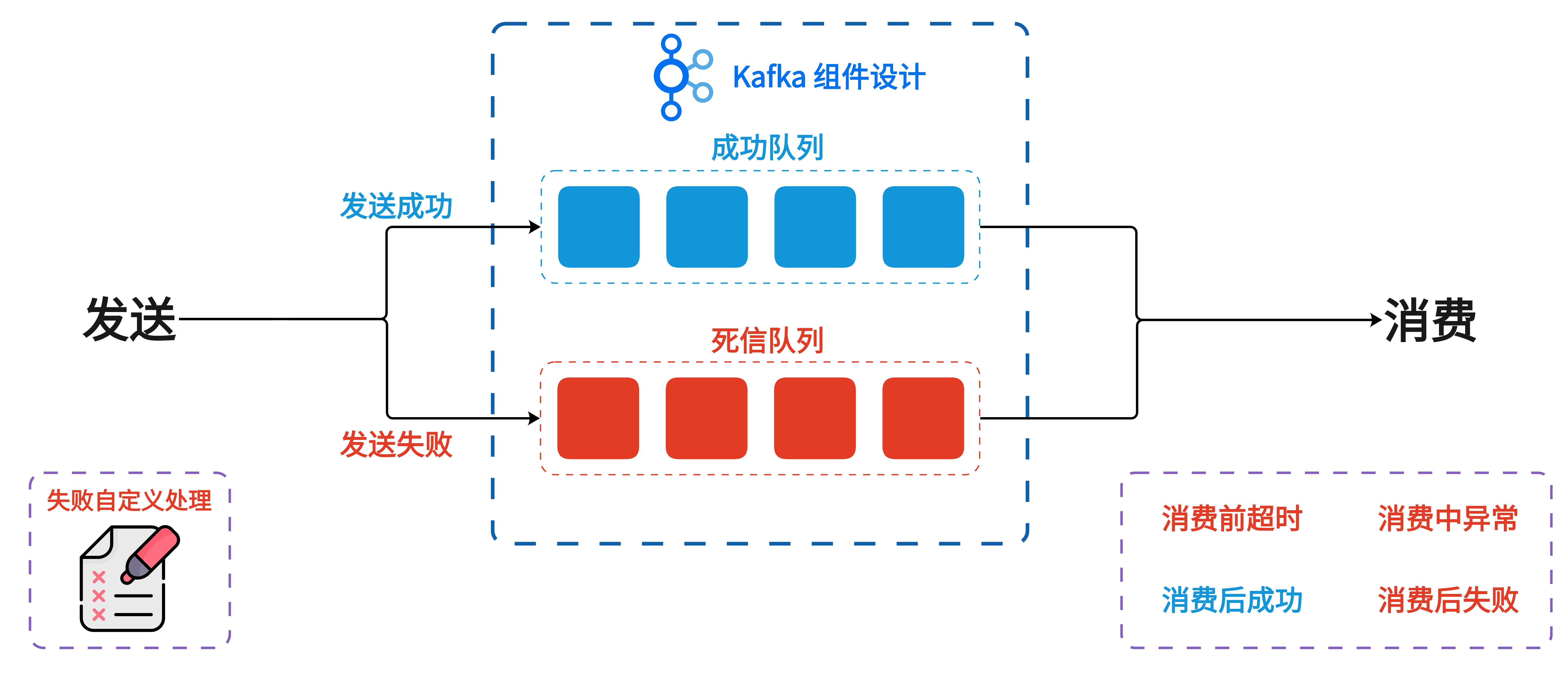 - **成功情况的处理:** 在消息发送成功、消费成功,都有灵活的扩展钩子,方便后续埋点与监控。