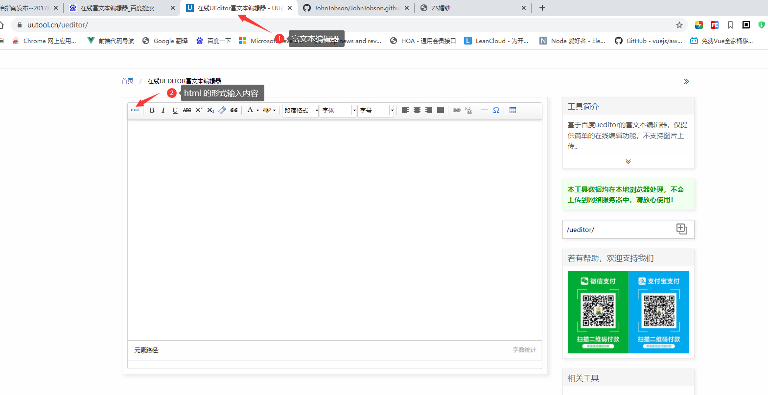 [在线UEDITOR富文本编辑器](https://uutool.cn/ueditor/)