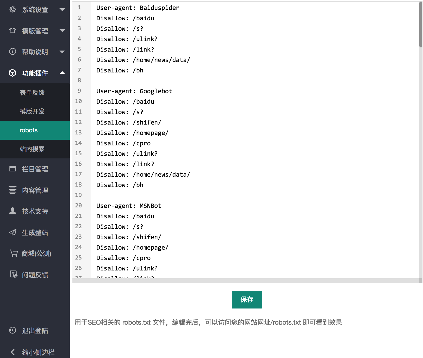 - **Description**: 网市场云建站系统之SEO robots.txt 文件管理插件