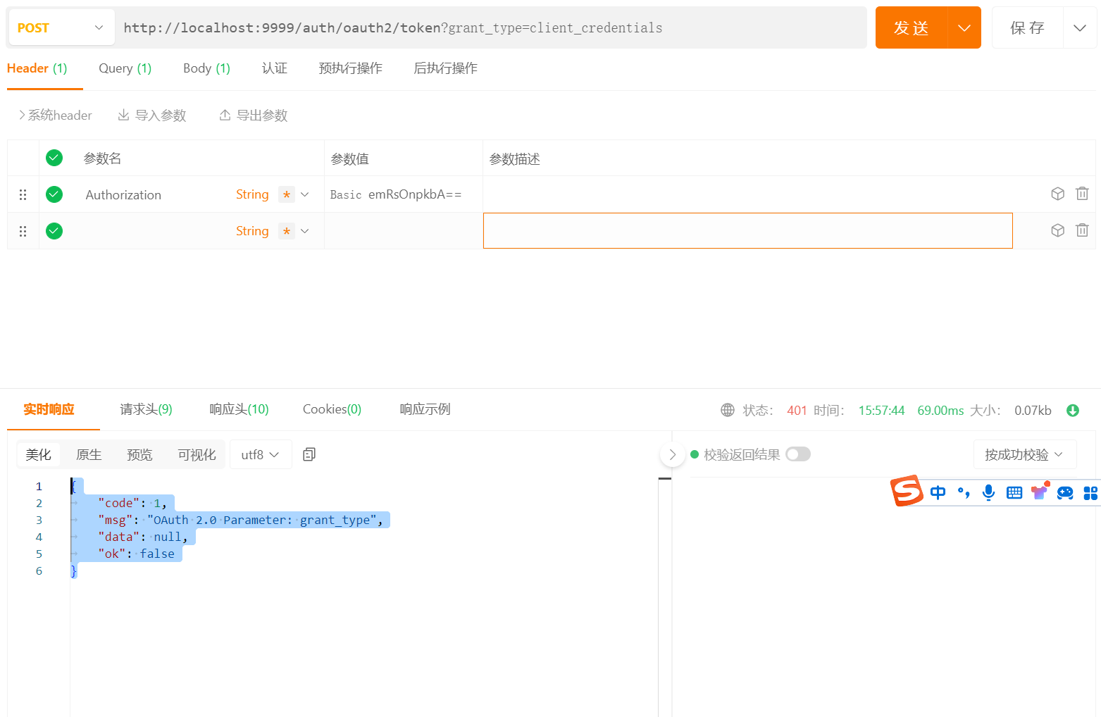 客户端模式登录失败,提示OAuth 2.0 Parameter: grant_type
