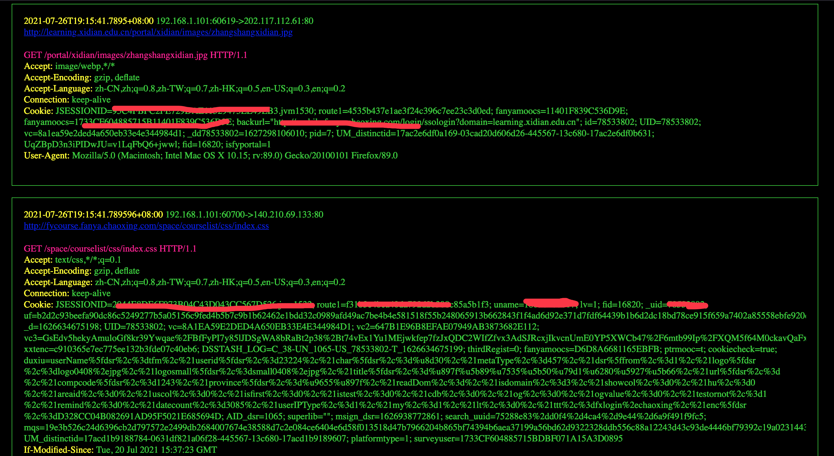 - webspy 可以嗅探所有流经本机网卡的http包,启动webspy前,建议向使用middleattack将目标主机的流量导过来