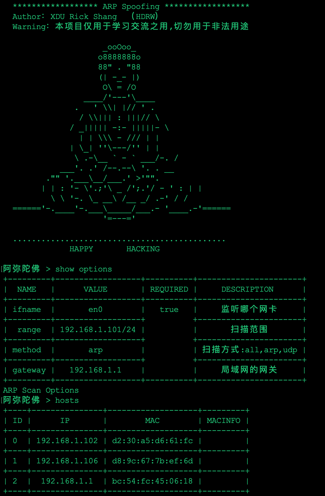 - **Description**: 基于go语言实现的ARP欺骗工具,支持局域网内主机扫描,ARP投毒、中间人攻击、敏感信息嗅探,HTTP报文嗅探