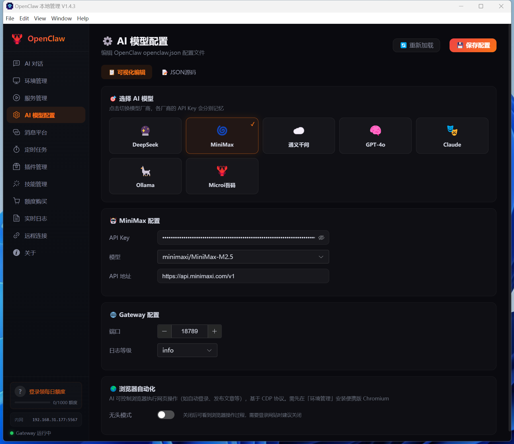 5. 保存并重启 Gateway