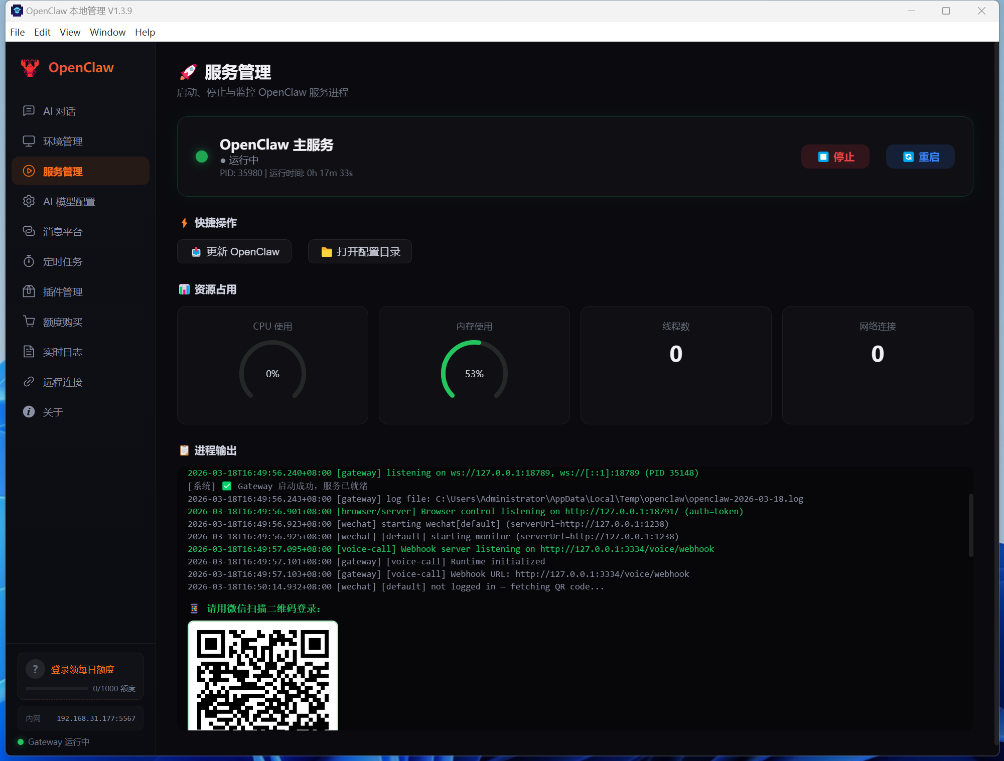 | ▶️ 服务管理 | 可视化启停 OpenClaw 网关,实时日志 · 就绪检测 · CPU/内存/网络全维度监控 |