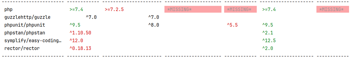 That's where `multi-package-composer-stats` comes. Feed it the links to dependency repositories you want to know versions for: