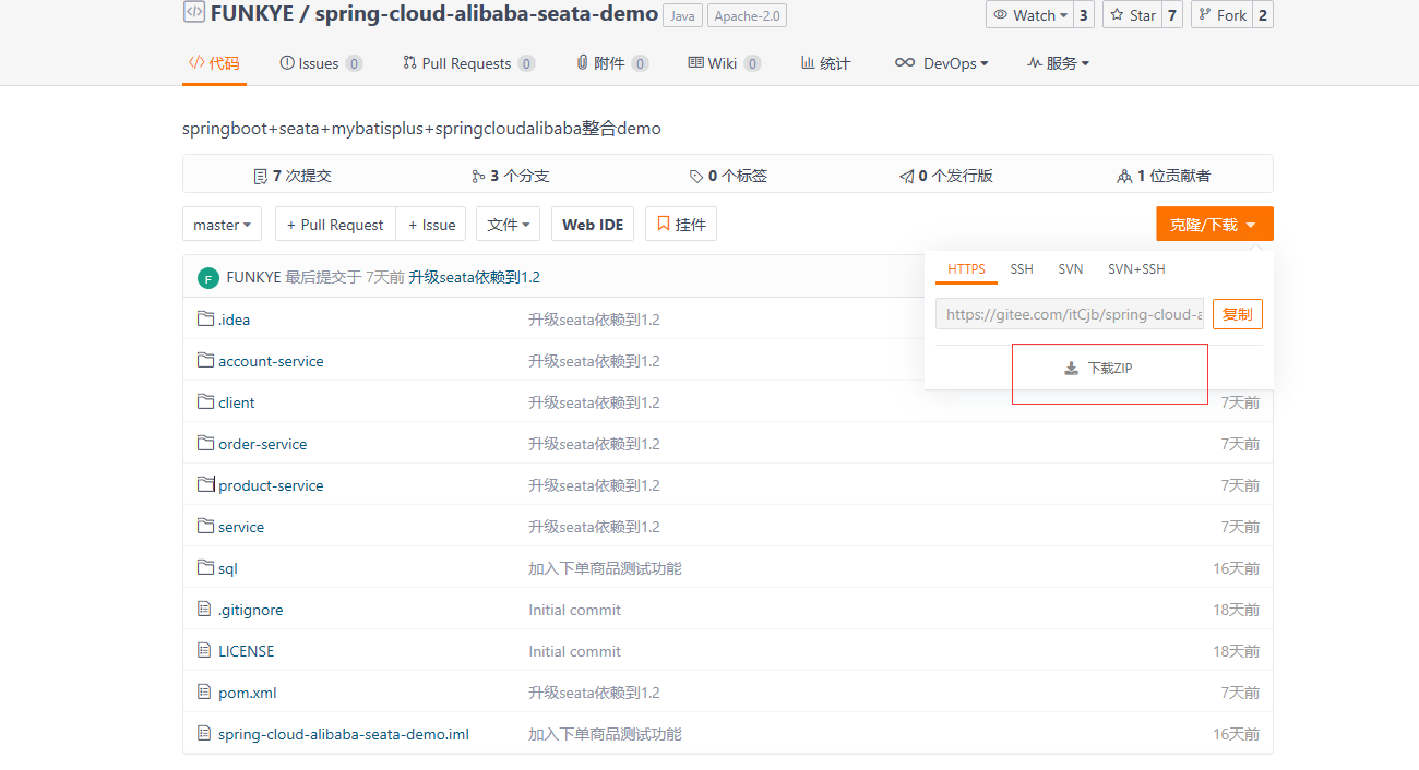 ### 链接2:https://gitee.com/itCjb/spring-cloud-alibaba-seata-demo