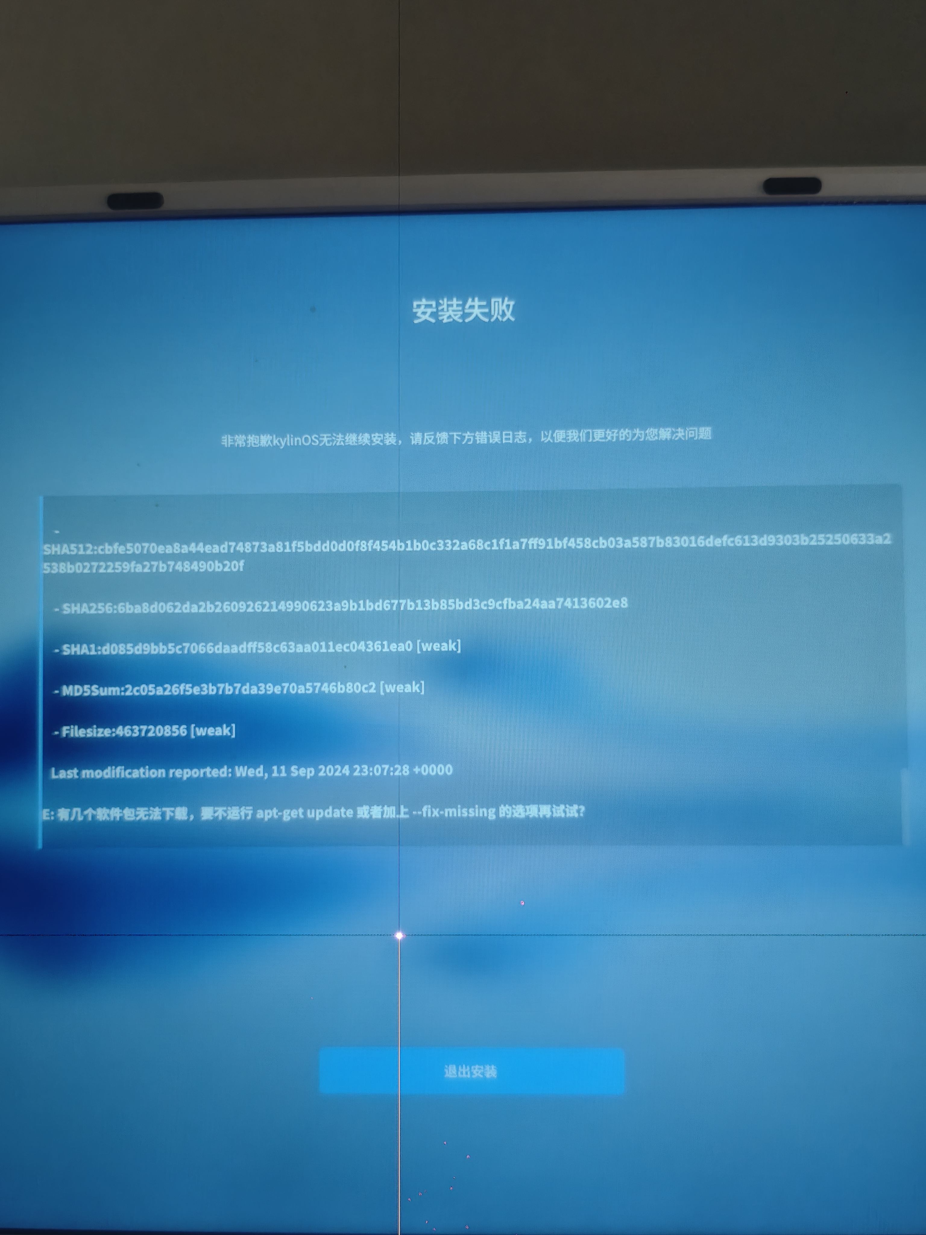 您好,我想反馈一下,我这个昨天是从openkylin官网下载的最新版本镜像系统2026年1月的版本,安装时出现“有几个软件包无法下载,要不运行apt-get update或者加上--fix-missing的选项再试试?”的错误提示,请问这个问题能给解决一下吗? 图片附件内容如下: