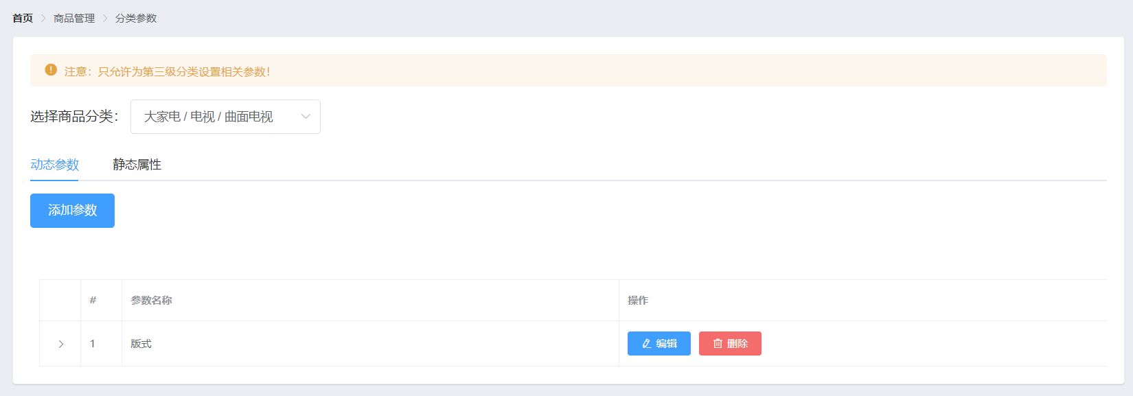 商品管理 -> 分类参数