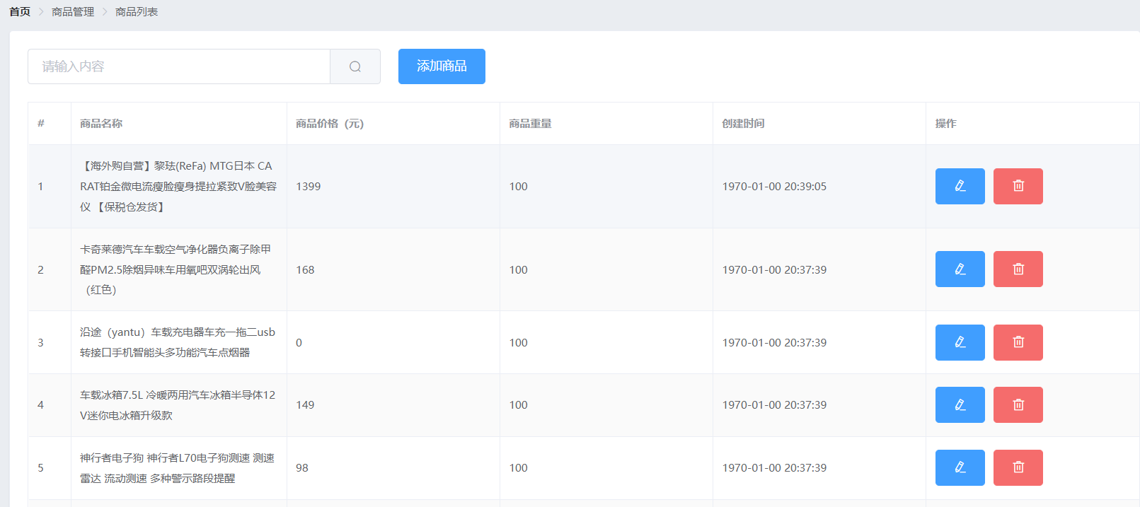 商品管理 -> 商品列表