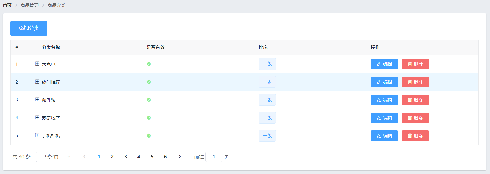 商品管理 -> 商品分类