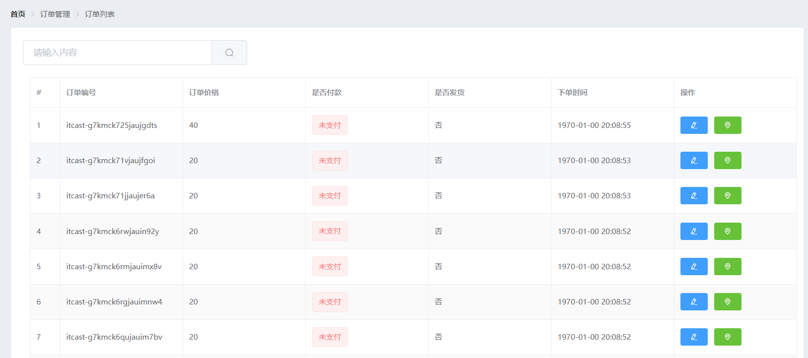 订单管理 -> 订单列表