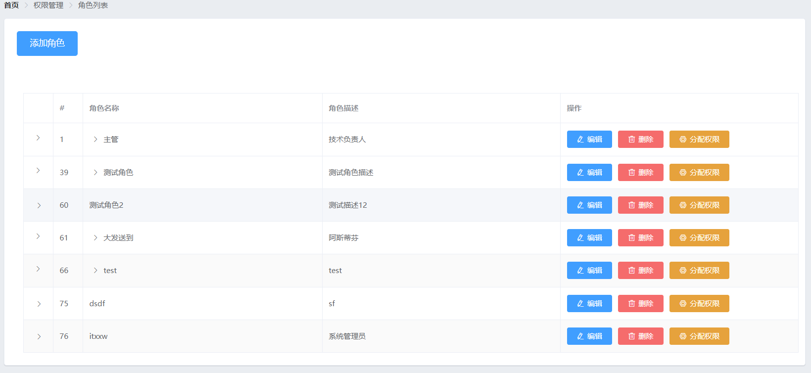 权限管理->角色列表