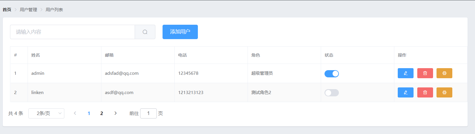 用户管理 -> 用户列表