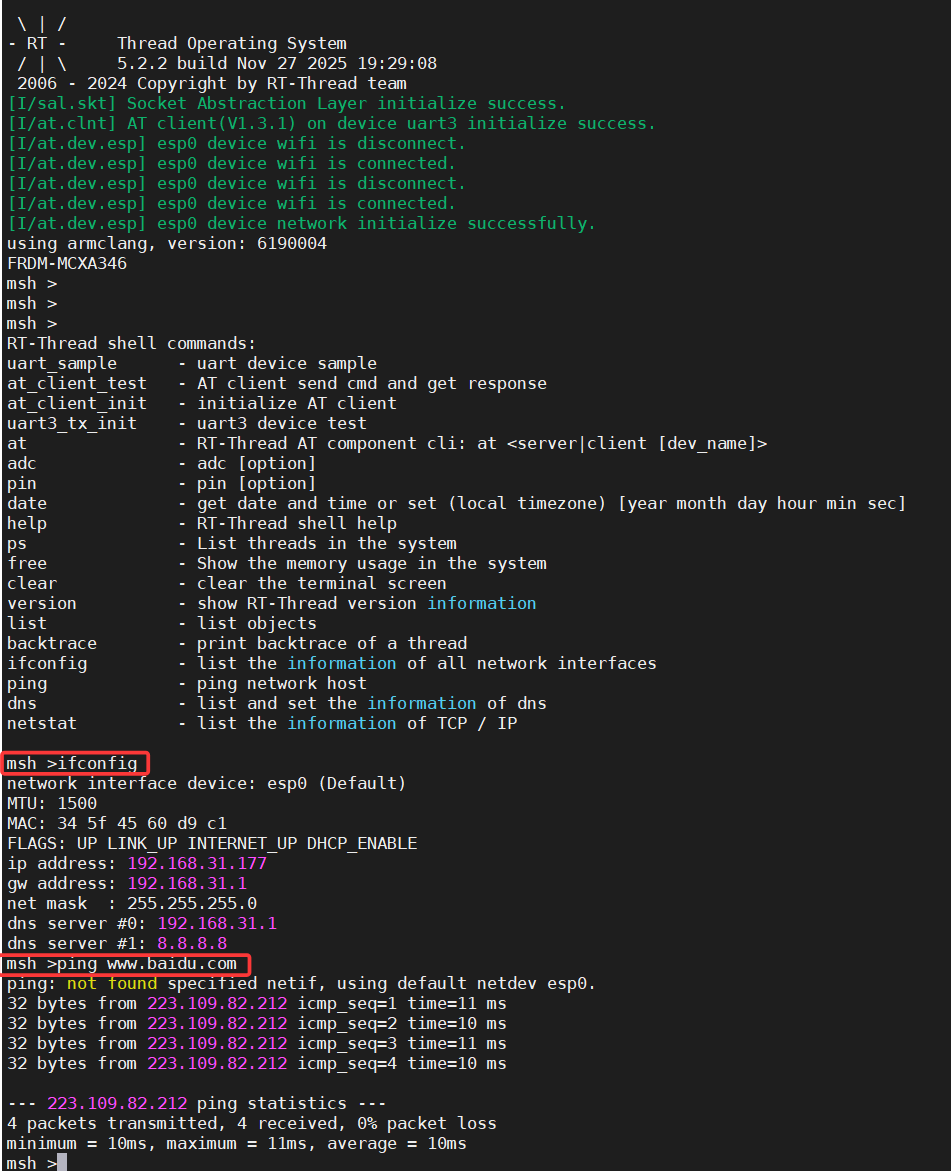 +## NXP FRDM-MCXA346 通过串口使用esp8266