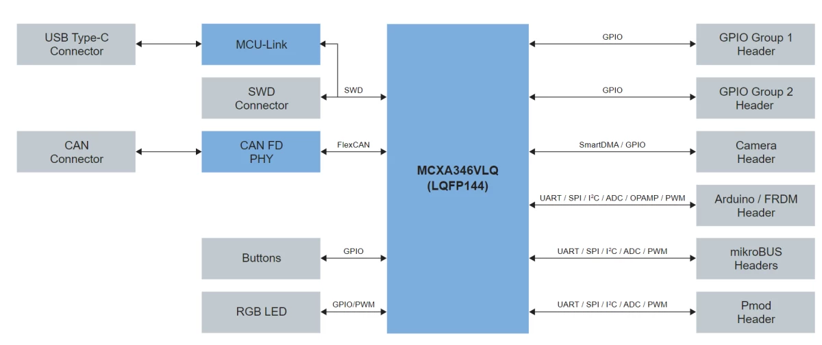 +FRDM-MCXA346是一款紧凑且可扩展的开发板,可让您快速基于FRDM-MCXA346微控制器单元(MCU)开展原型设计。它们提供行业标准的接口,可轻松访问MCU的I/O,配备集成的开放标准串行接口、外部闪存和板载MCU-Link调试器。