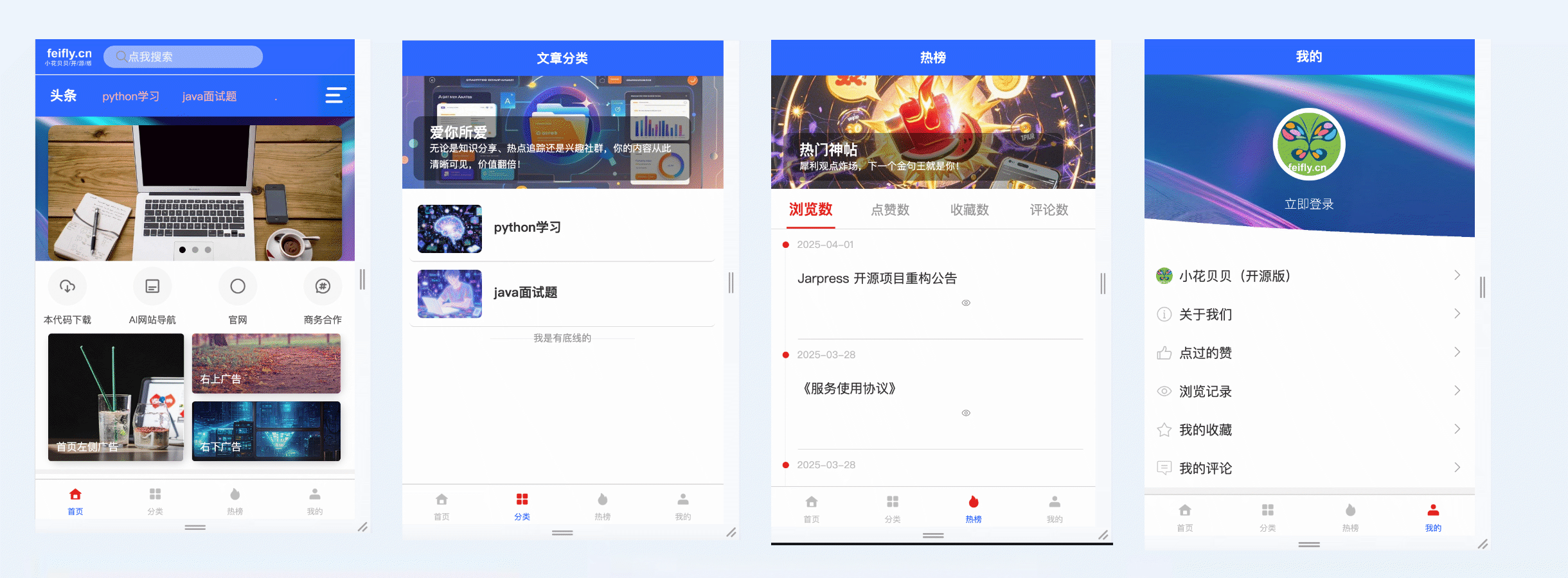 多款开源资讯前端选择,总一套你喜欢的配色和主题,满足不同用户的喜好,并可付费定制。