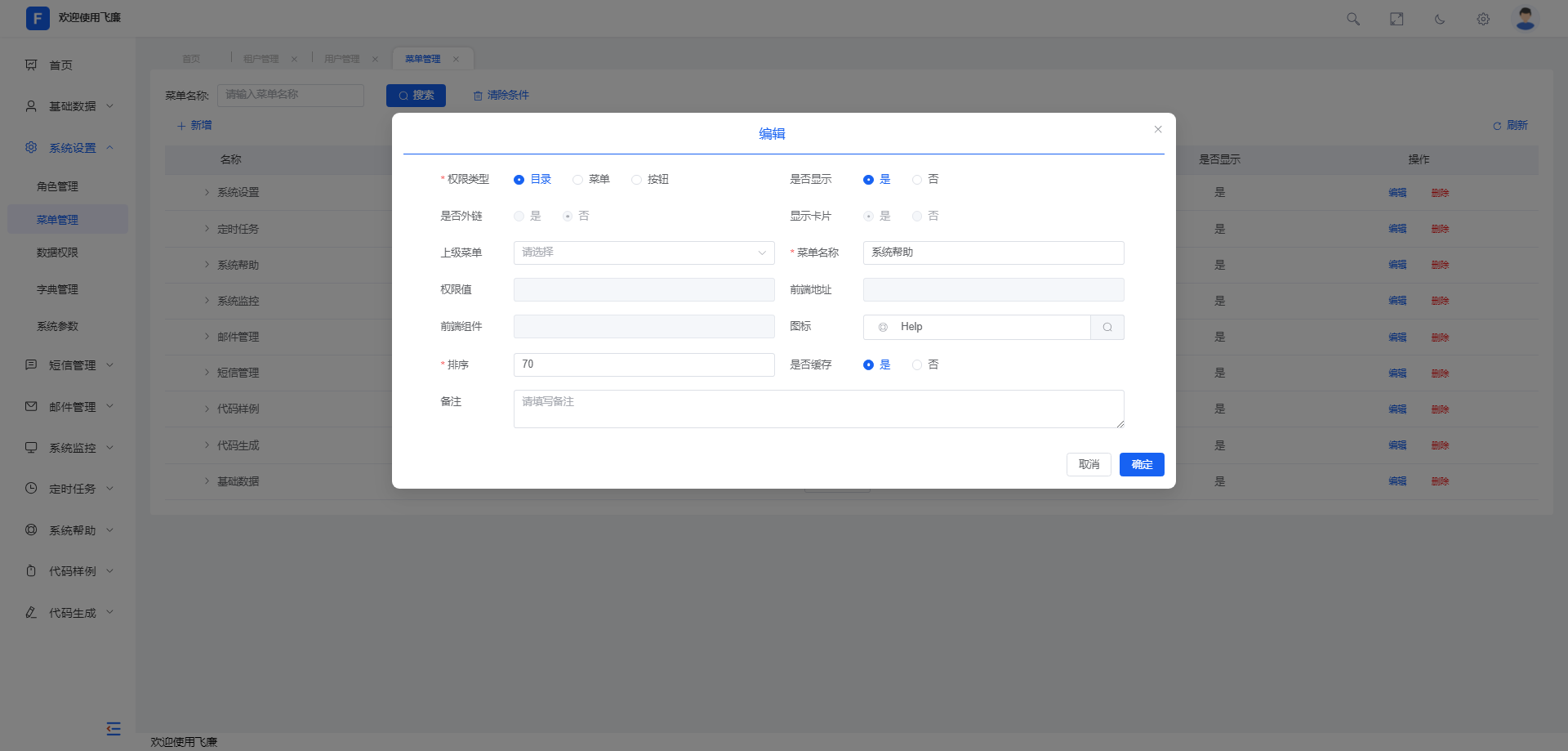 - **Description**: 飞廉是一个完全开源的开发平台,基于SpringBoot3.0和VUE3.0,集成了mybatis plus,spring security,websocket,多租户,数据规则等常用模块。