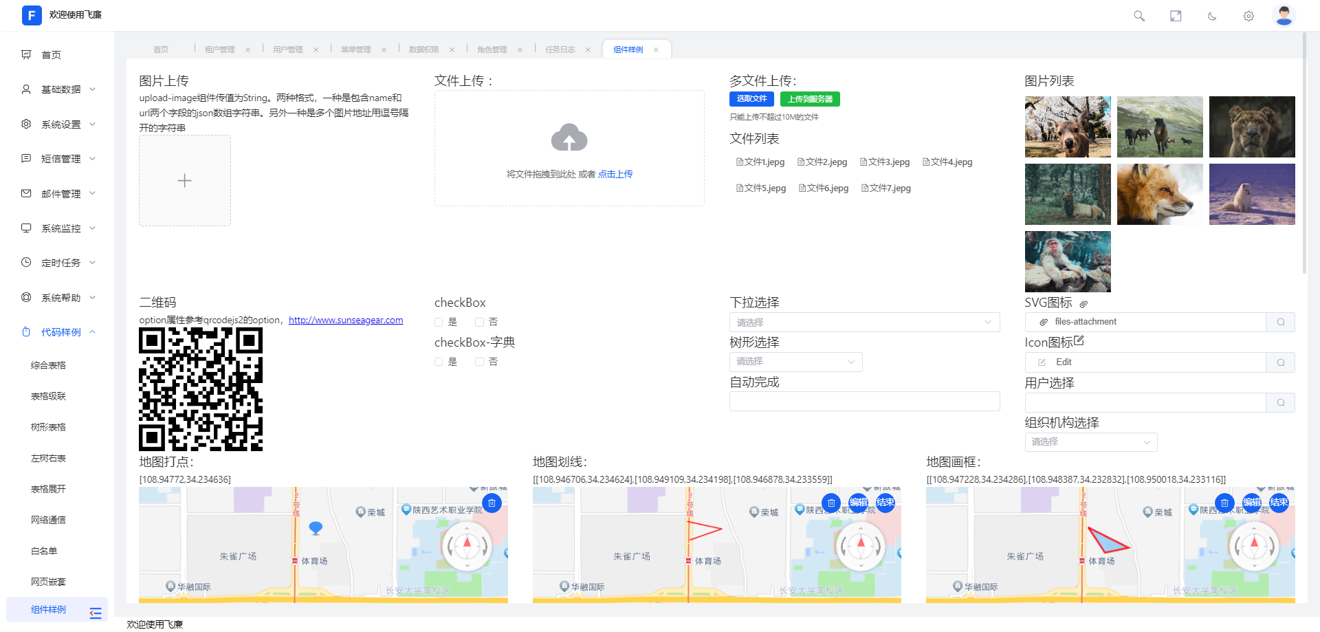 * 集成了平时开发需要的大量模块和组件:百度地图,即时通信websocket,OSS云存储,短信,邮件,定时任务,各类日志,多租户,动态配置的数据权限。