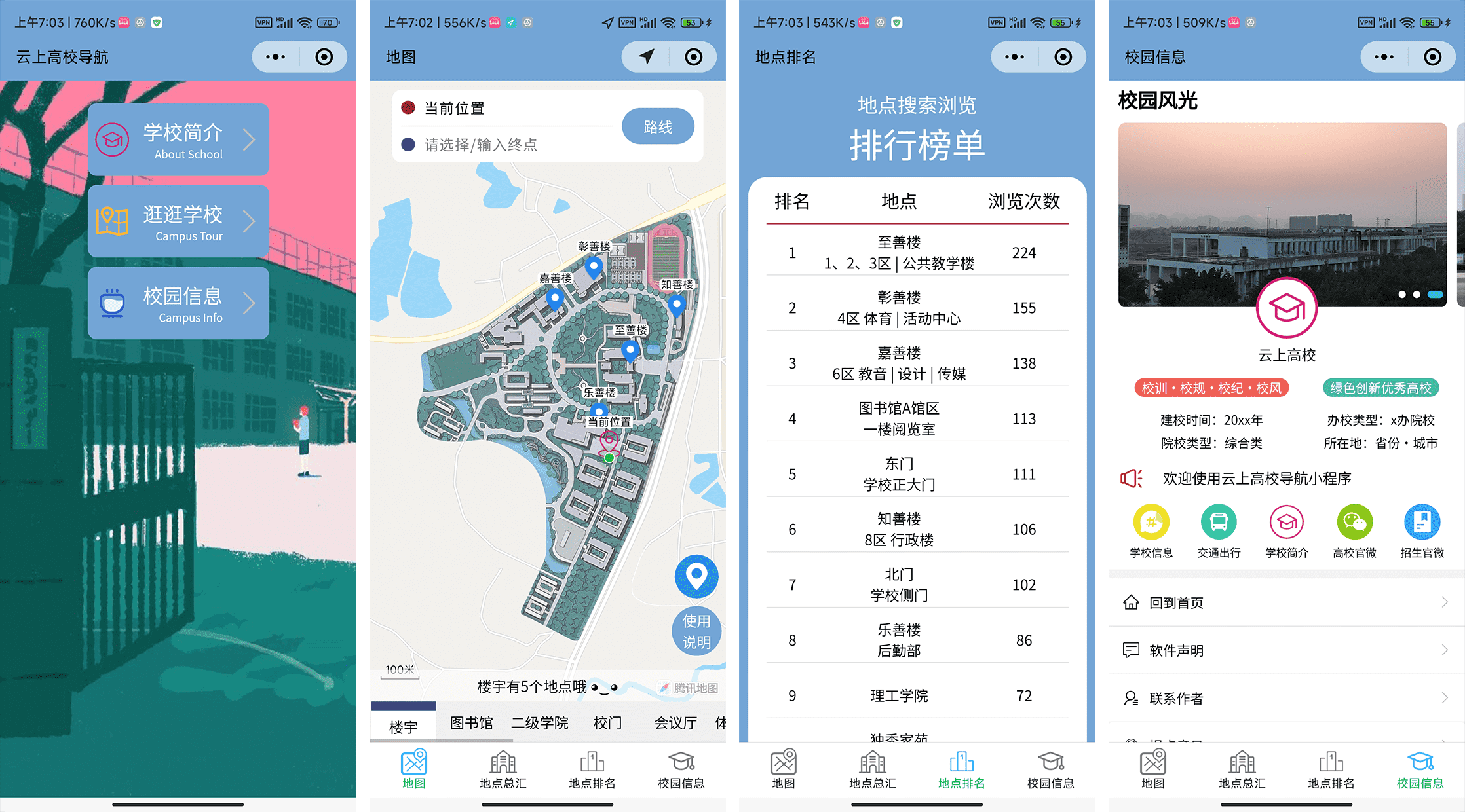 “云上高校导航”是一套基于小程序云开发的校园导航类系统开发方案。