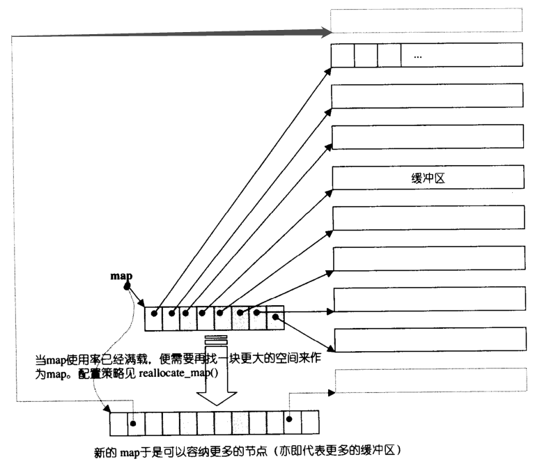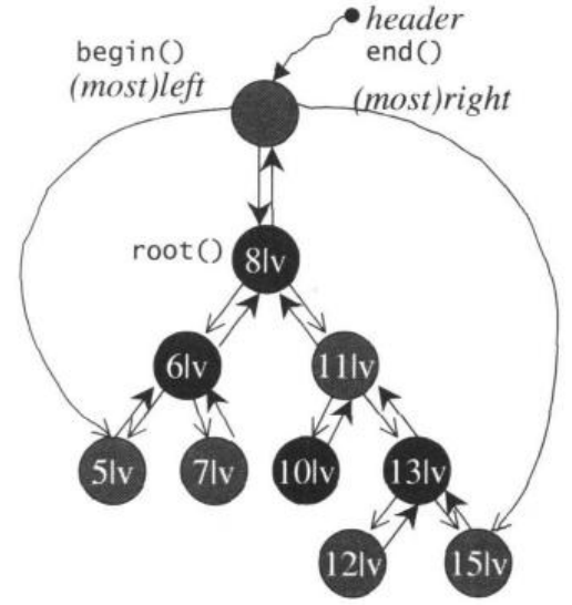 标准STL map的底层机制是RB-tree(红黑树),另一种以hash table为底层机制实现的称为hash_map。map的架构如下图所示
