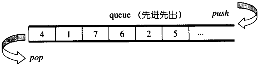 queue(队列)是一种先进先出(First In First Out)的数据结构,只有一个入口和一个出口,分别位于最底端和最顶端,出口元素外,没有其他方法可以获取到内部的其他元素,其结构图如下: